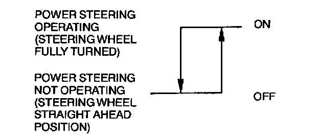 The power steering switch detects the power steering operating condition by the variation of the oil pressure in the power steering oil pump.
