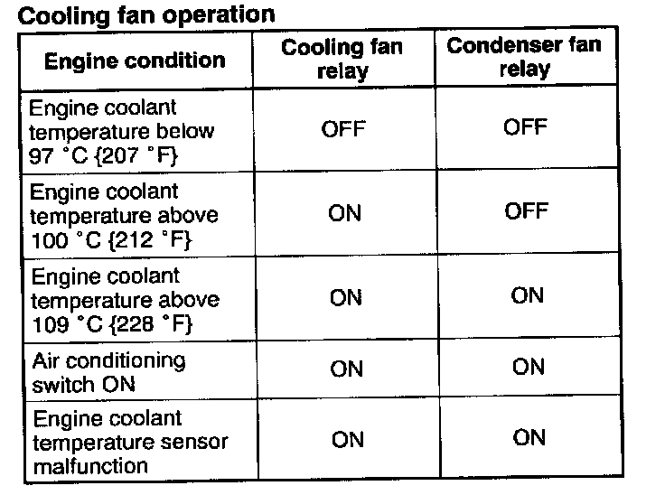 - Open circuit between condenser fan relay and condenser fan motor or fan motor ground.