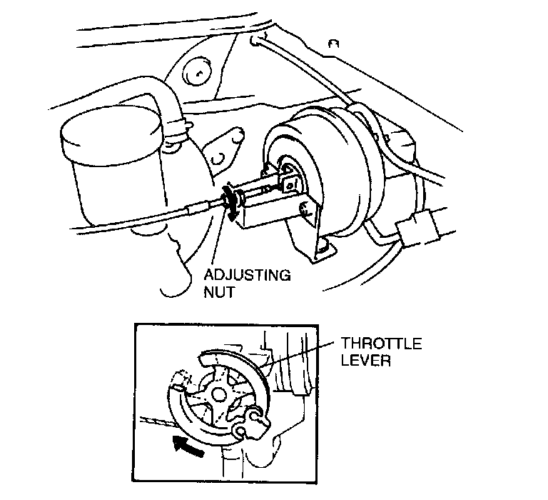 1. Turn the adjusting nut as shown in the figure until the throttle lever starts moving to eliminate the actuator cable play.