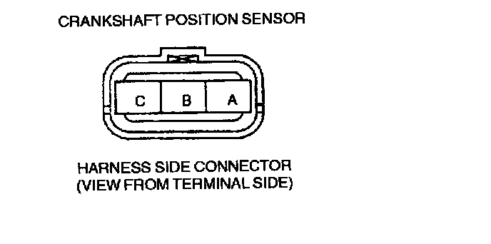 - Crankshaft position sensor connector terminal A and main relay terminal D through common connector to ground.