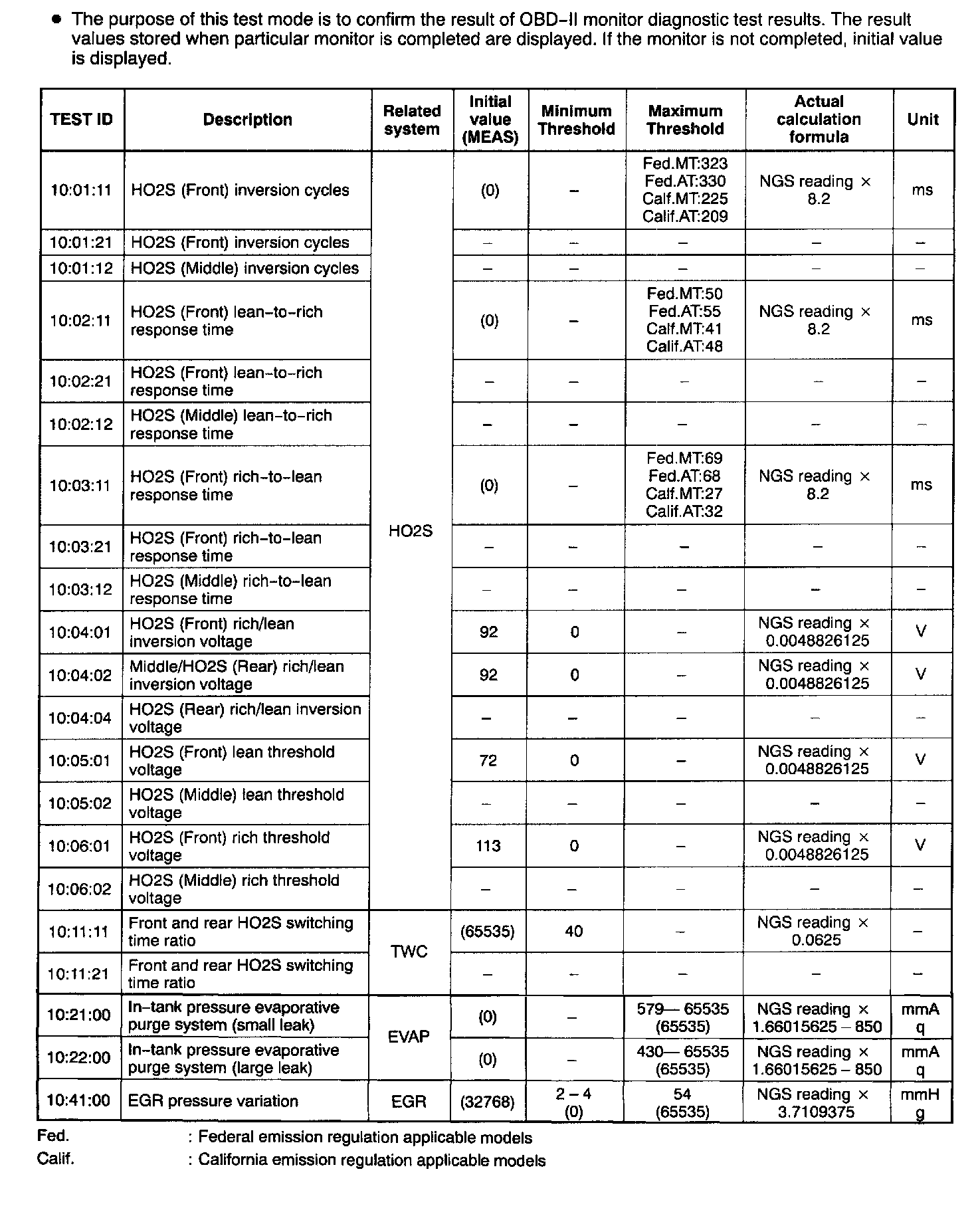 Diagnostic Monitoring Test Results