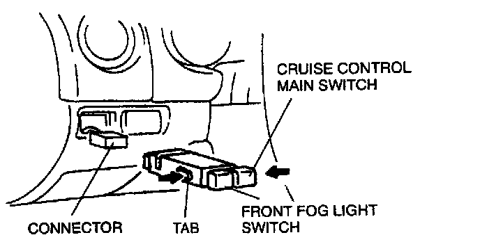 4. Push the tabs of the cruise control main switch and pull the switch out from inside of the dashboard.