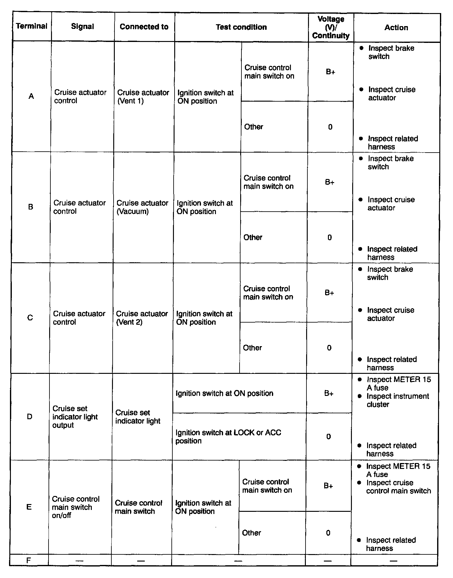 Terminal Voltage Table (Reference): Pinouts A - F:
