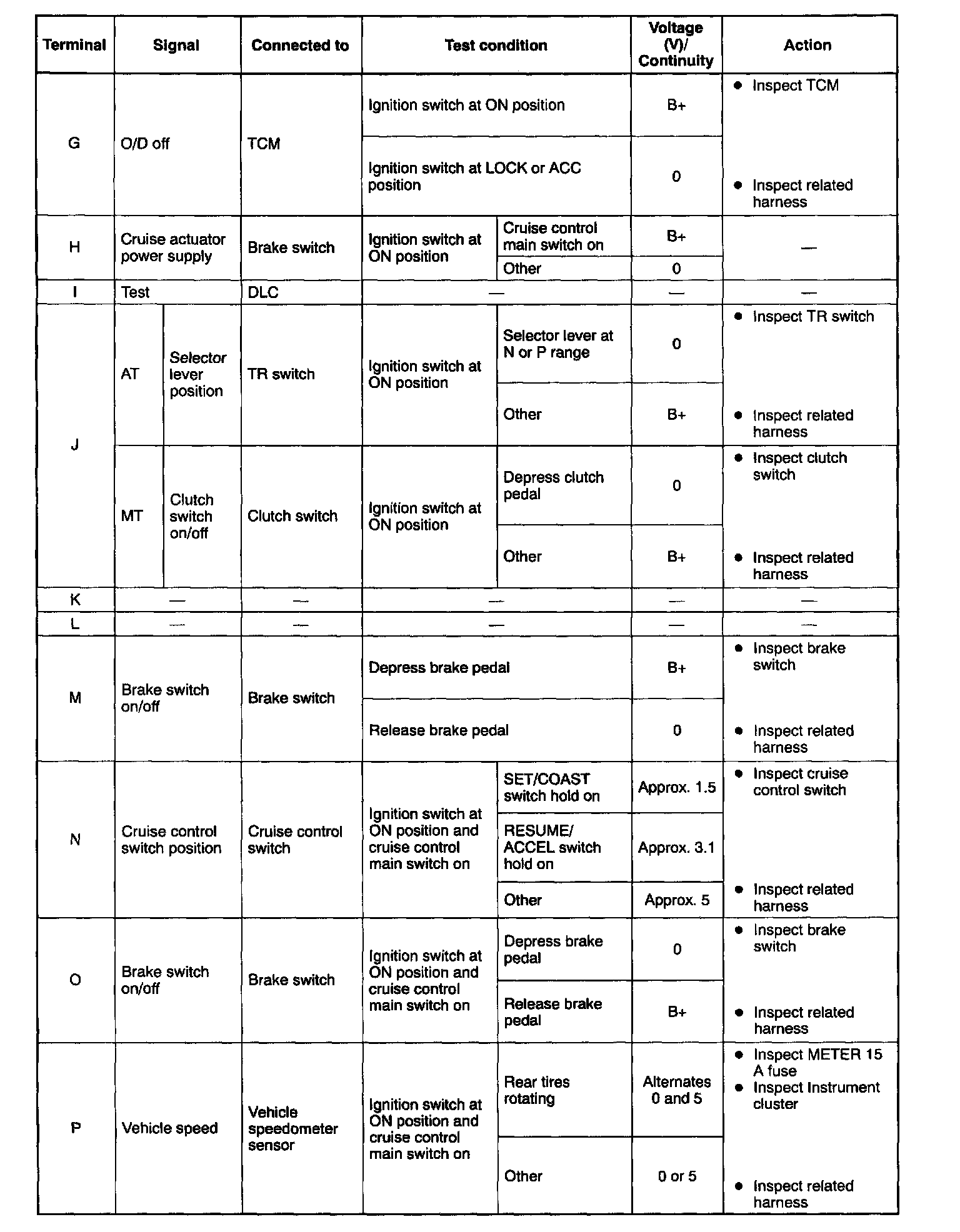 Terminal Voltage Table (Reference): Pinouts G - P: