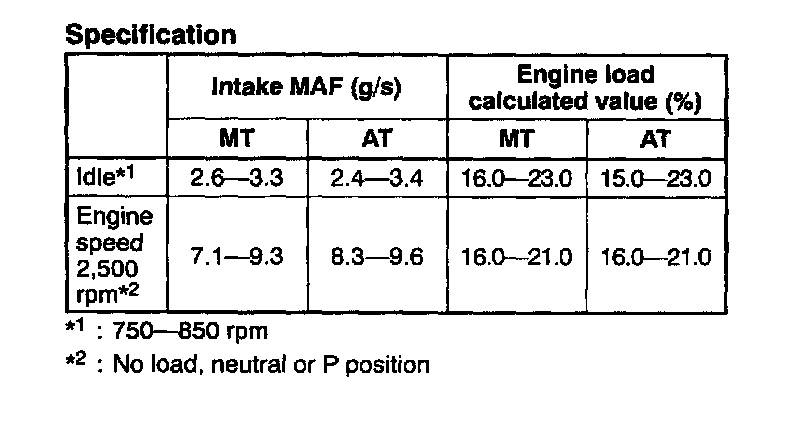 NOTE: The scan tool shows the MAF rate and load value.