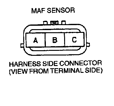 - Ground circuit (MAF sensor connector terminal A and PCM connector terminal 3C through common connector.)
