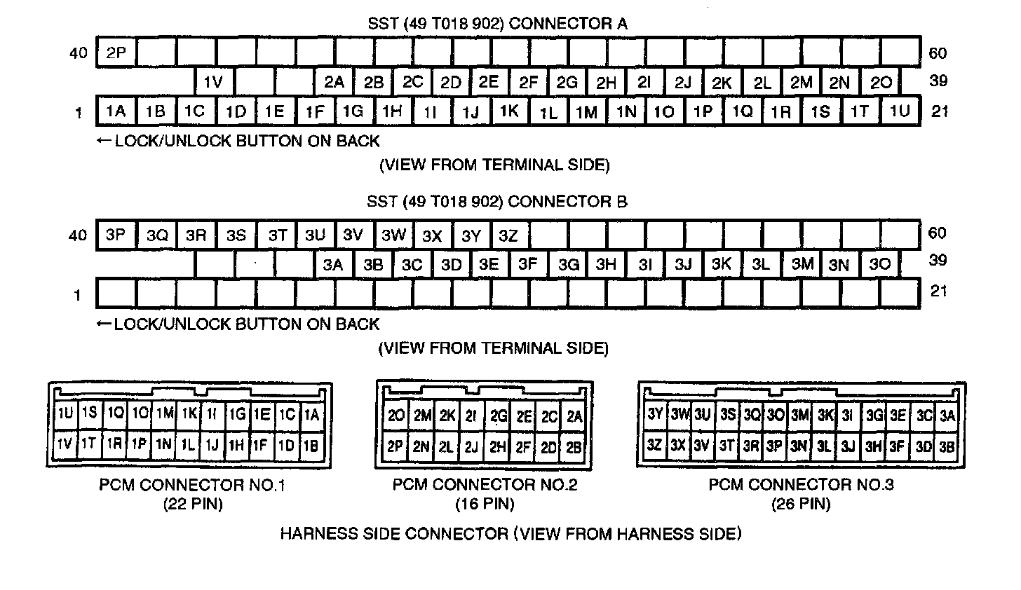 4. Connect the SST (ESM adapter harness) between the PCM and the vehicle harness connectors.