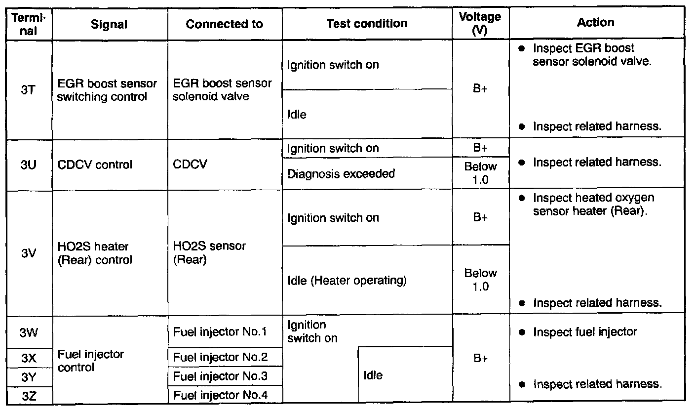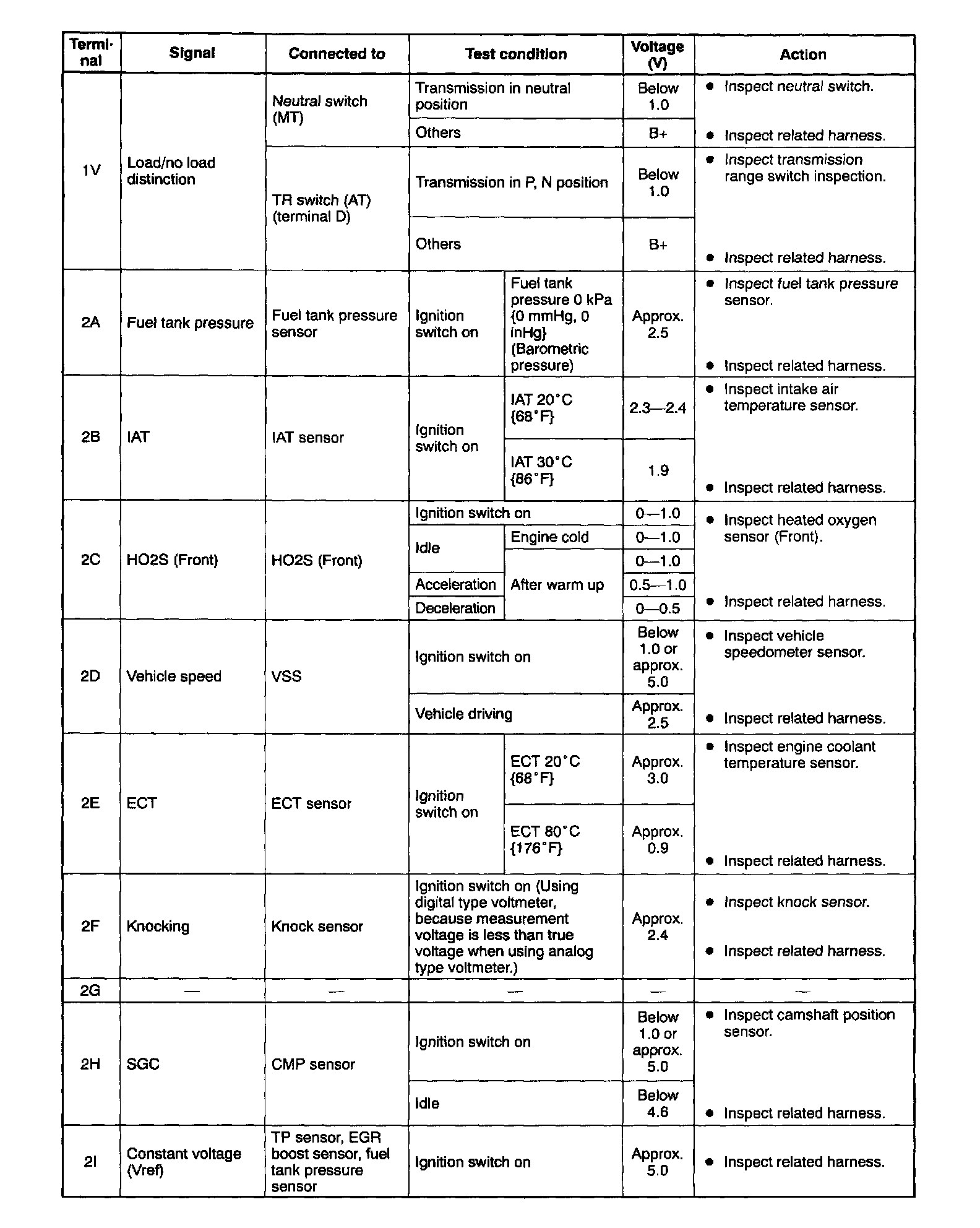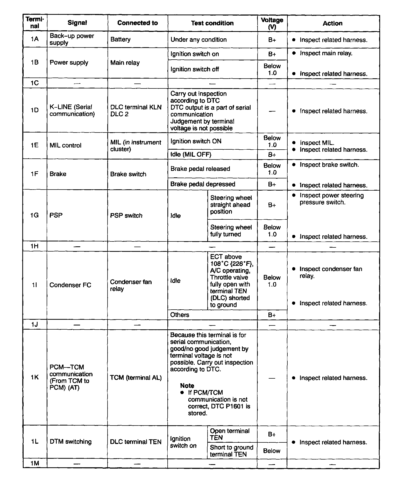 PCM Terminal voltage table (Reference)