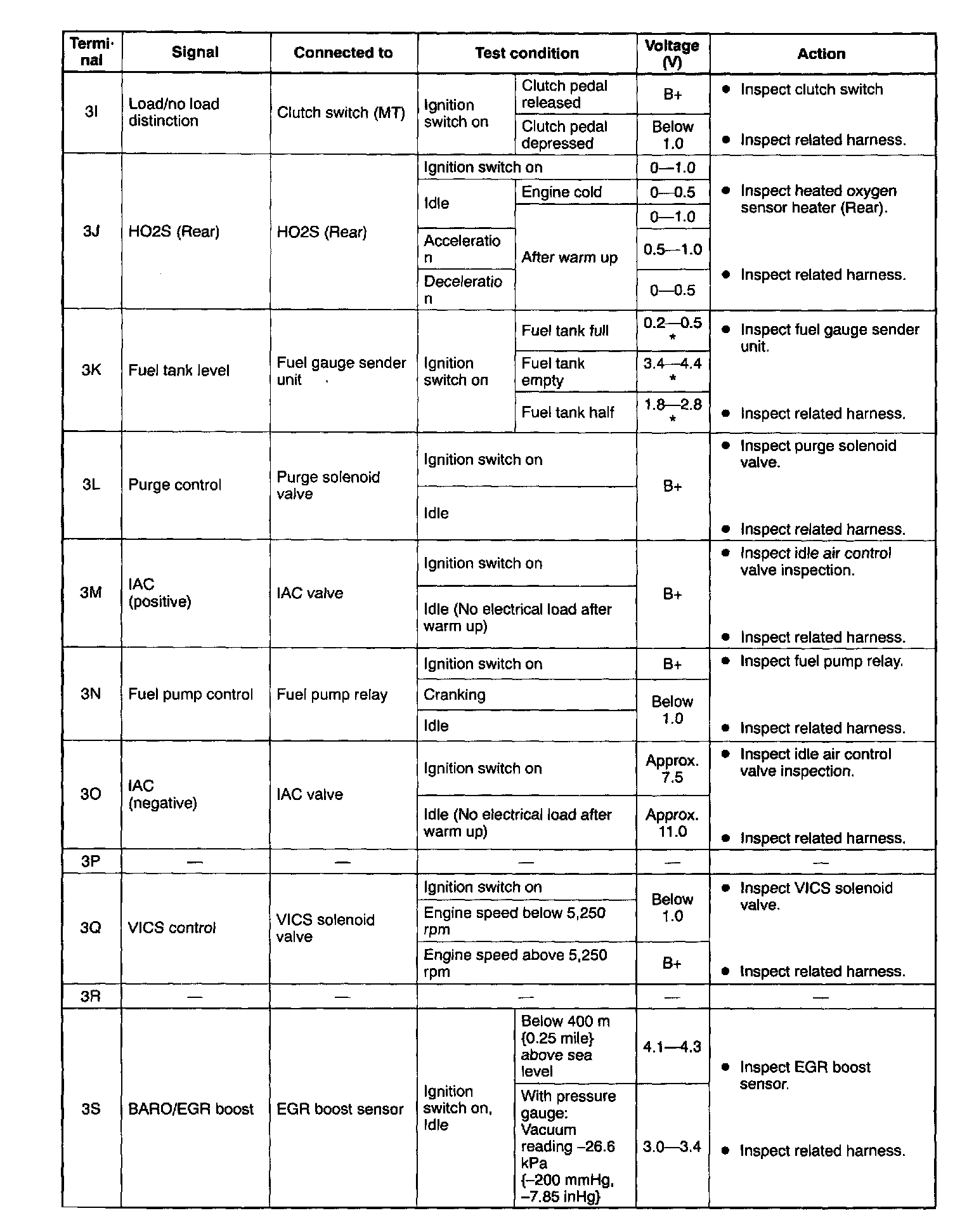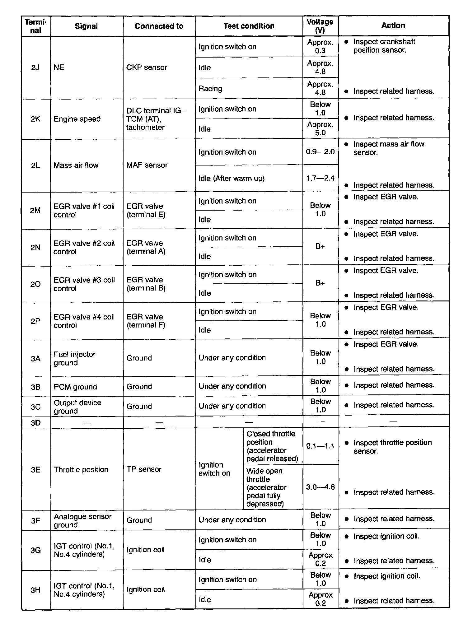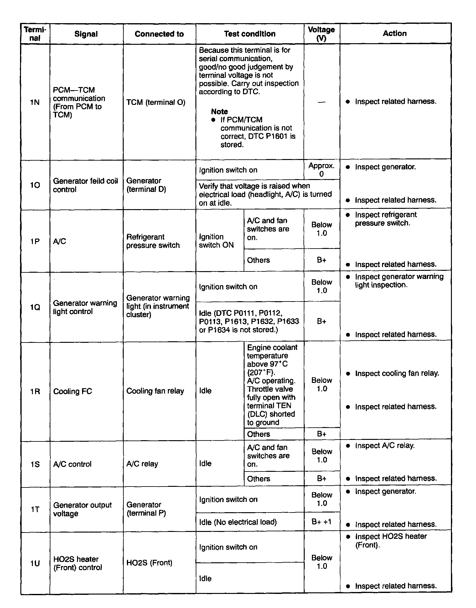 PCM Terminal voltage table (Reference)