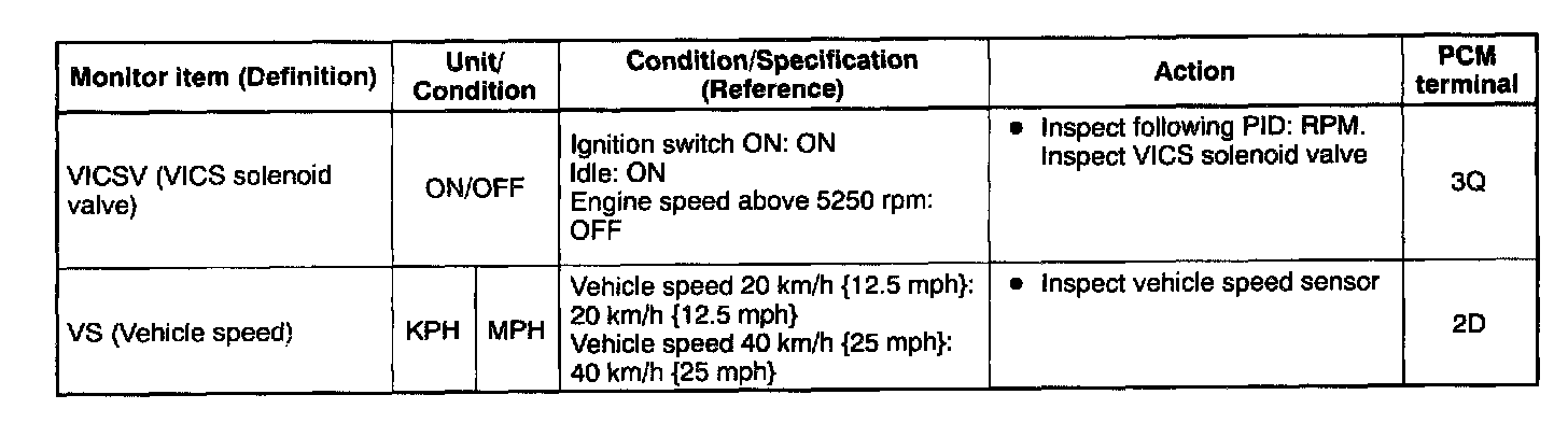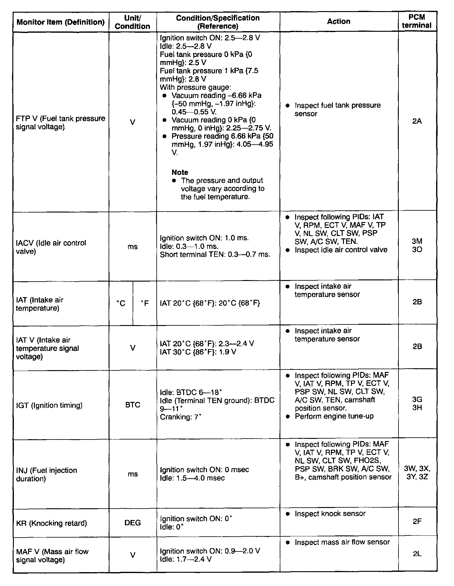 - If PID value is not within the specification, follow the instructions in ACTION column.