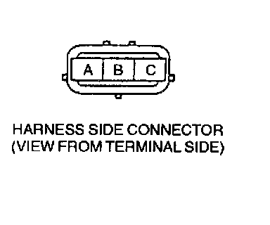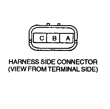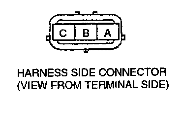 3. Verify there is no continuity between the TP sensor connector (vehicle side) terminal A and battery positive harness using an ohmmeter.