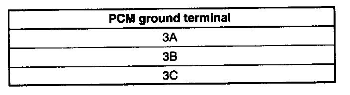3. Inspect for continuity between the PCM ground terminals and body ground using an ohmmeter.
