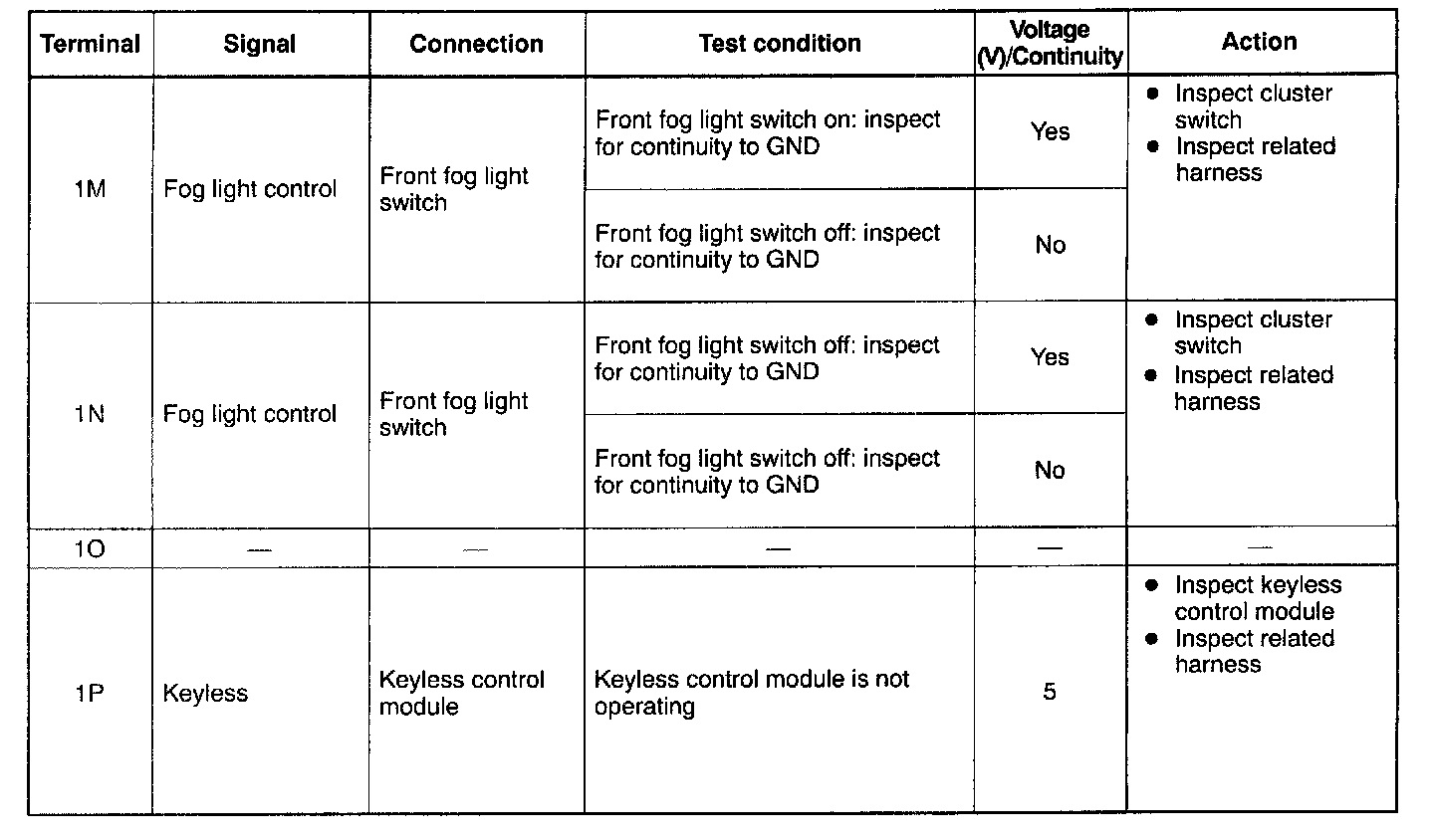 Terminal Voltage Table (Reference) - Pinouts (1M - 1P):