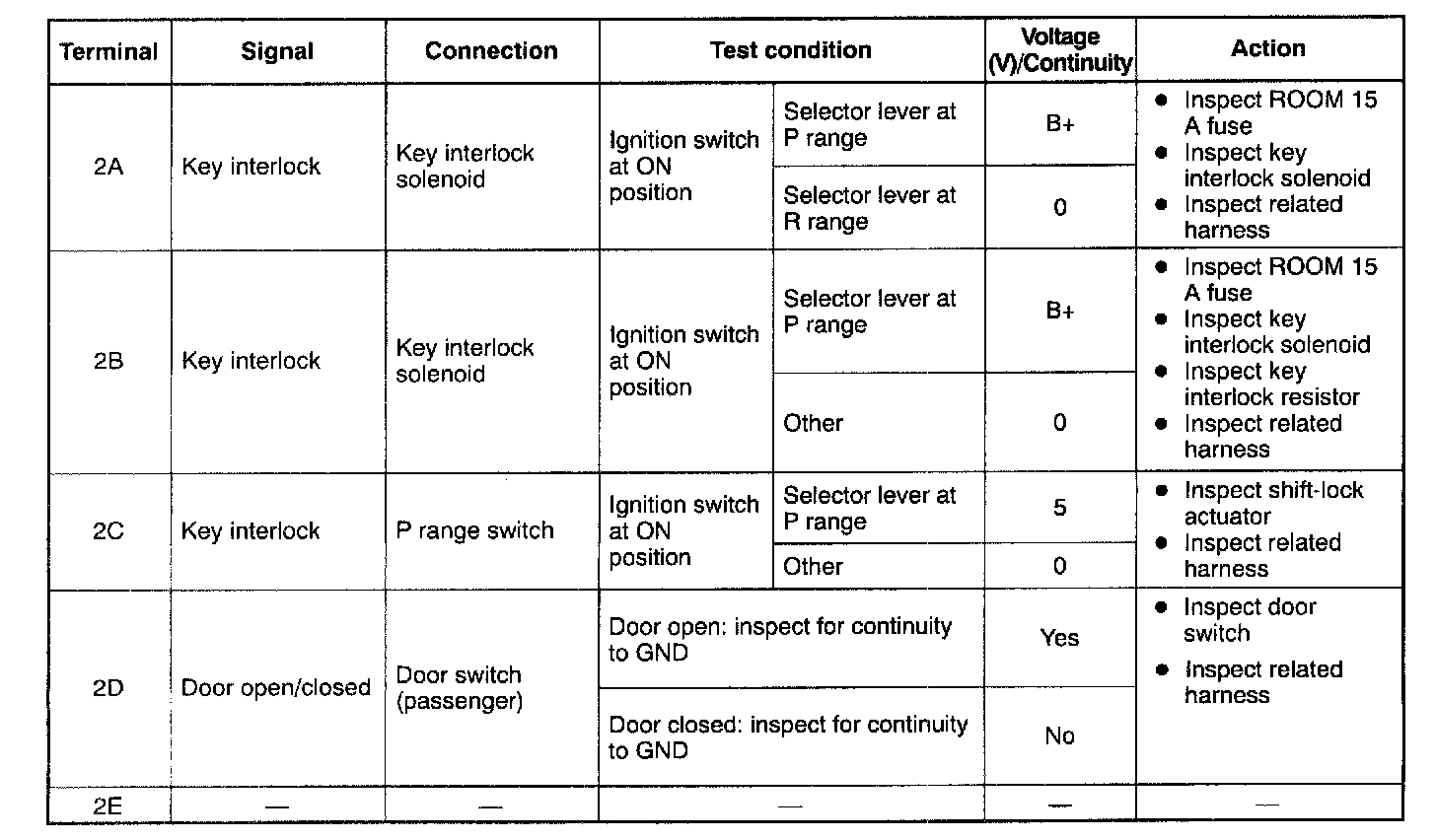Terminal Voltage Table (Reference) - Pinouts (2A - 2E):