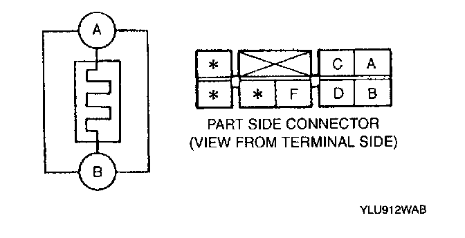 3. Inspect for continuity between the power outside mirror terminals A and B using an ohmmeter.