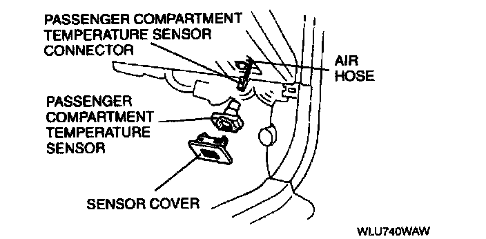 3. Disconnect the air hose and passenger compartment temperature sensor connector.