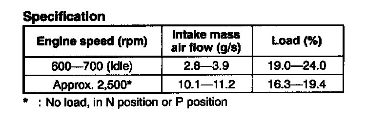 NOTE: The scan tool shows the mass air flow rate and load value.