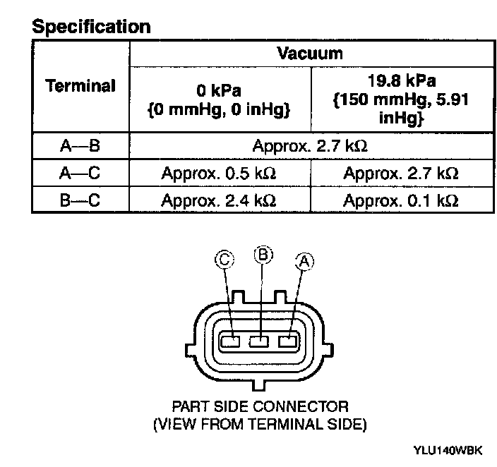 3. Use an ohmmeter to measure the resistance between the terminals as shown in the table.