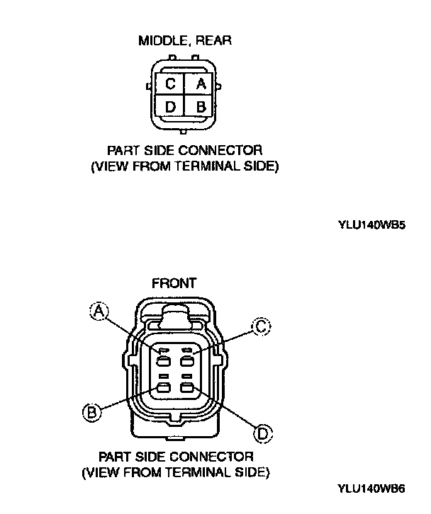 2. Measure the resistance between HO2S terminals D and C using an ohmmeter.