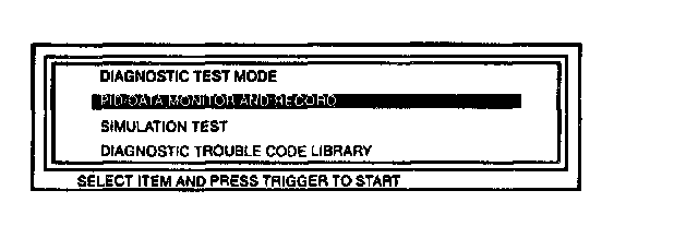 2. Referring to the NGS instruction manual, select the "PID/DATA MONITOR AND RECORD" and press TRIGGER.