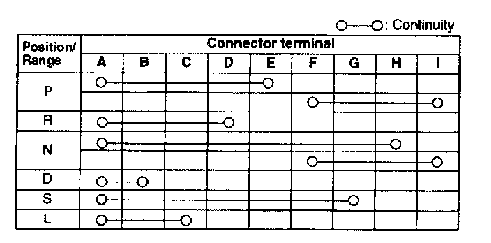 TRANSAXLE RANGE (TR) SWITCH INSPECTION [GF4A-EL]Inspection of Operation