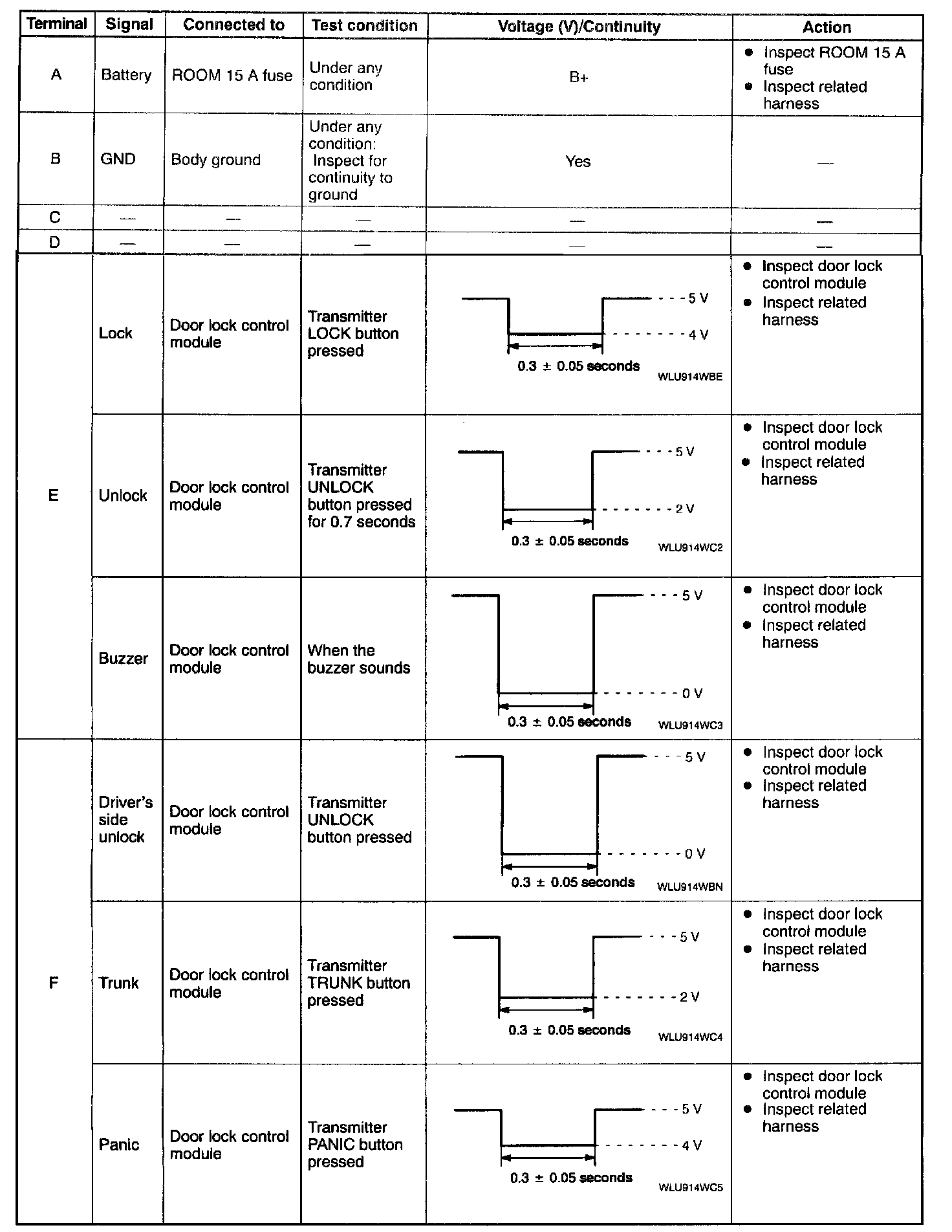 3. Disconnect the keyless control module connector and check for continuity at terminal B.