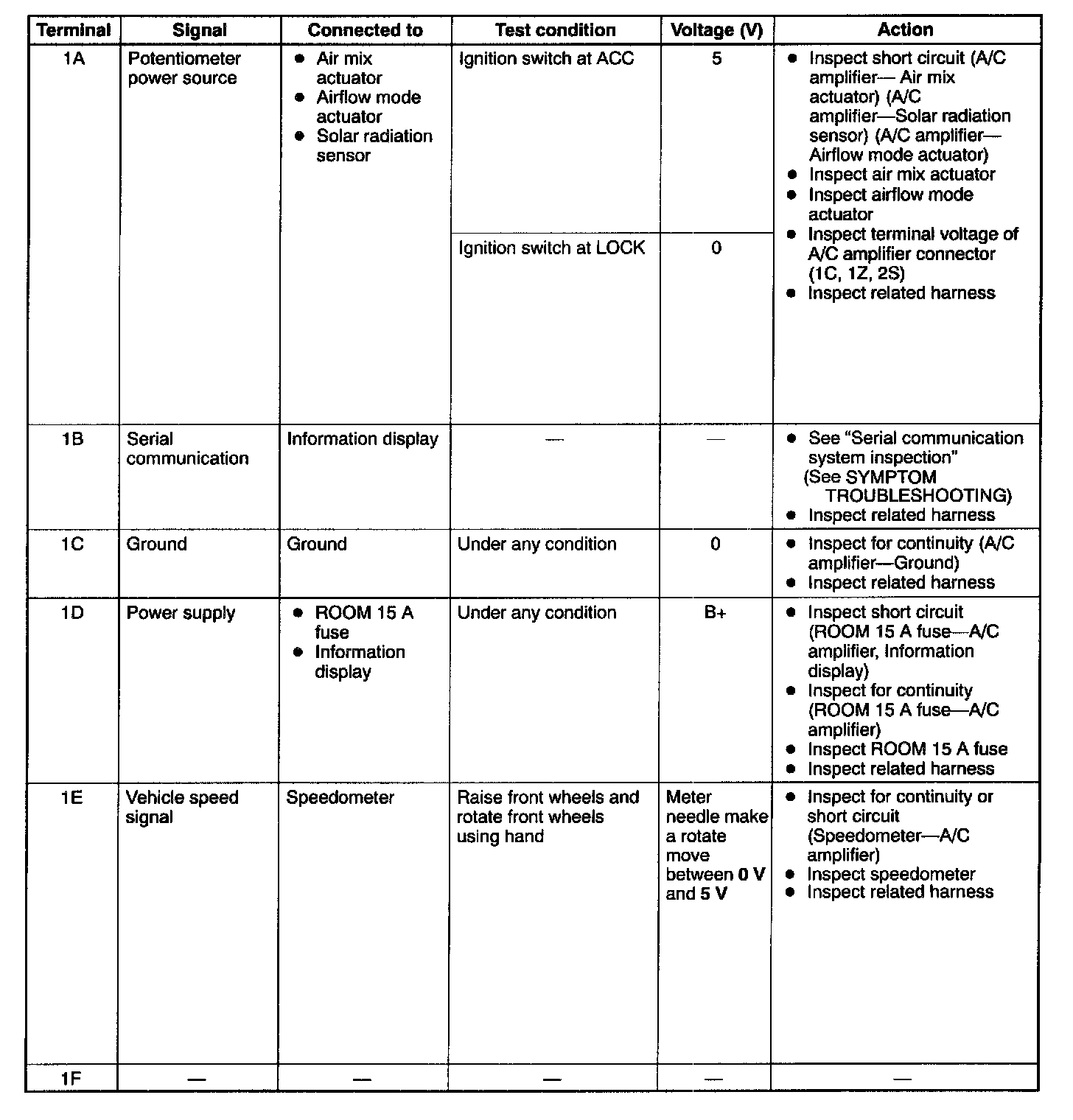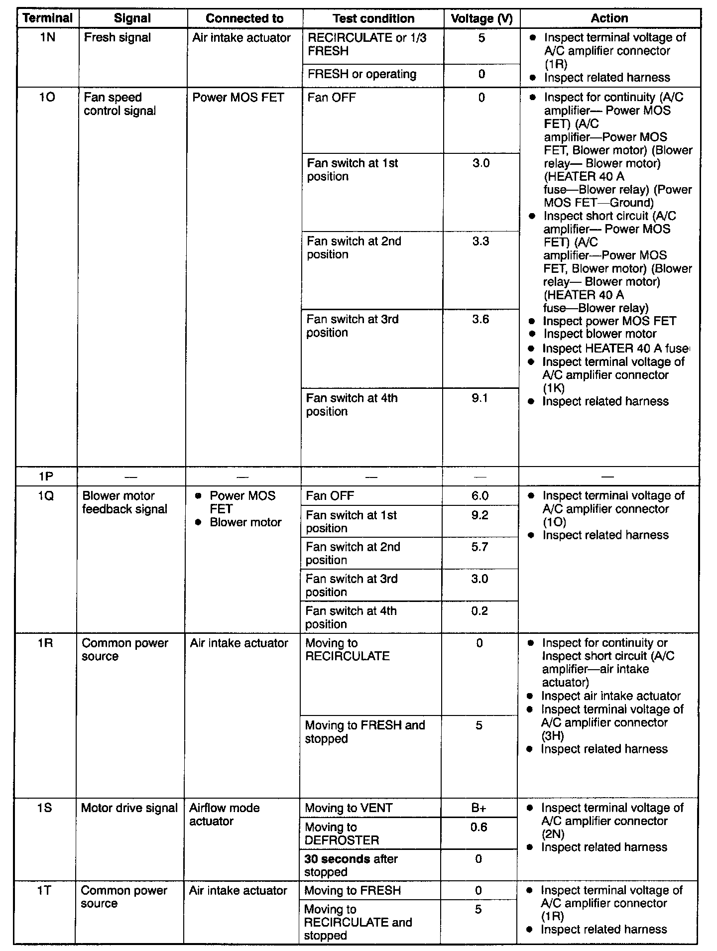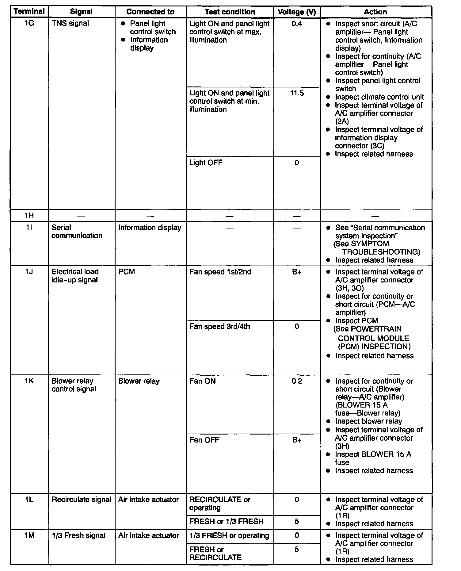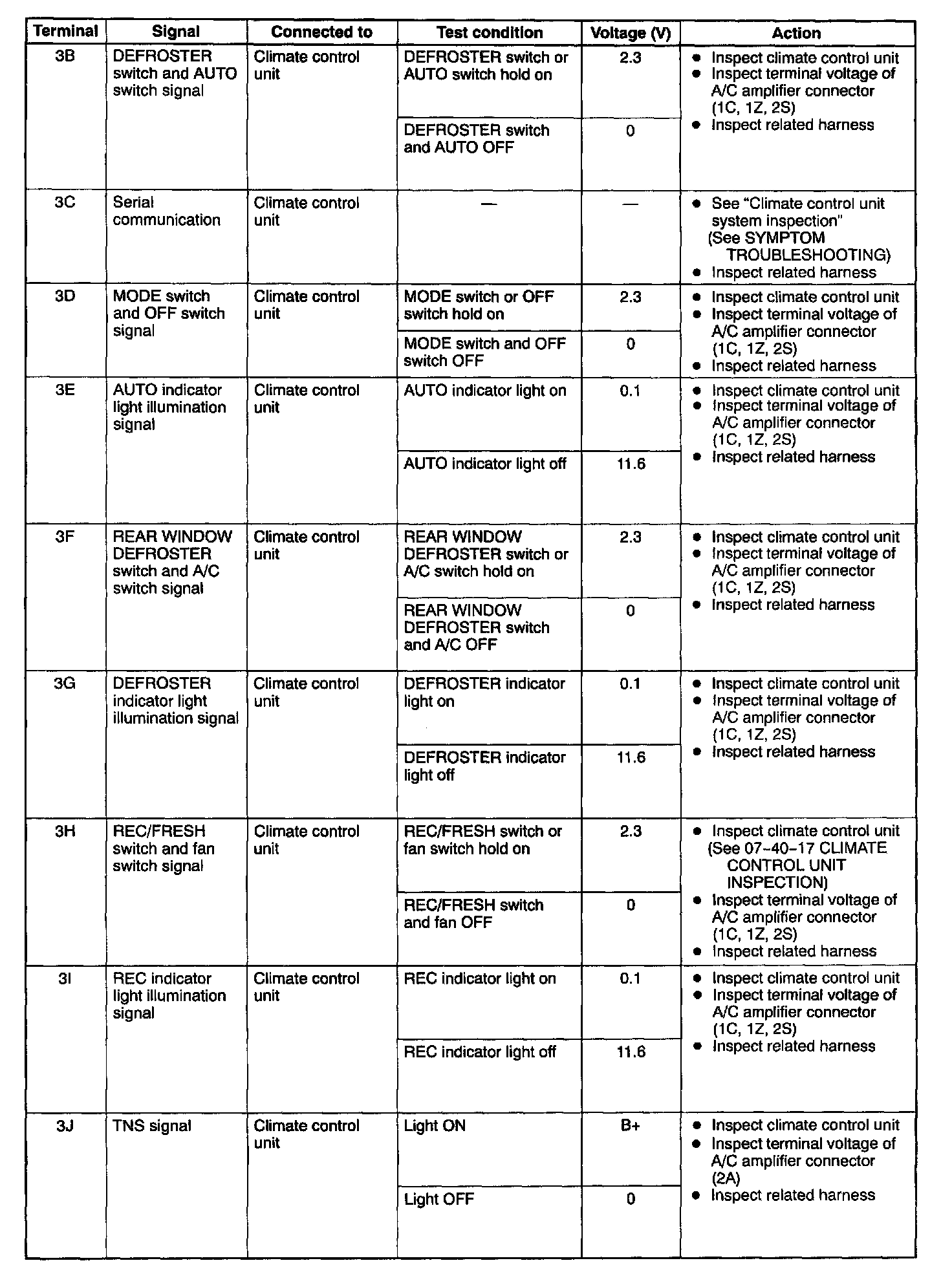 4. Measure the voltage at each A/C amplifier terminal and refer to the terminal voltage table.