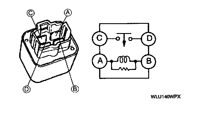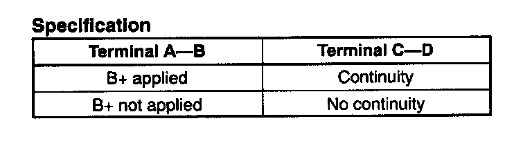 3. Apply B+ and inspect continuity between terminals of the main relay using an ohmmeter.