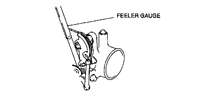 4. Insert a 0.37 mm {0.015 in} feeler gauge between the throttle adjusting screw (TAS) and the throttle lever.