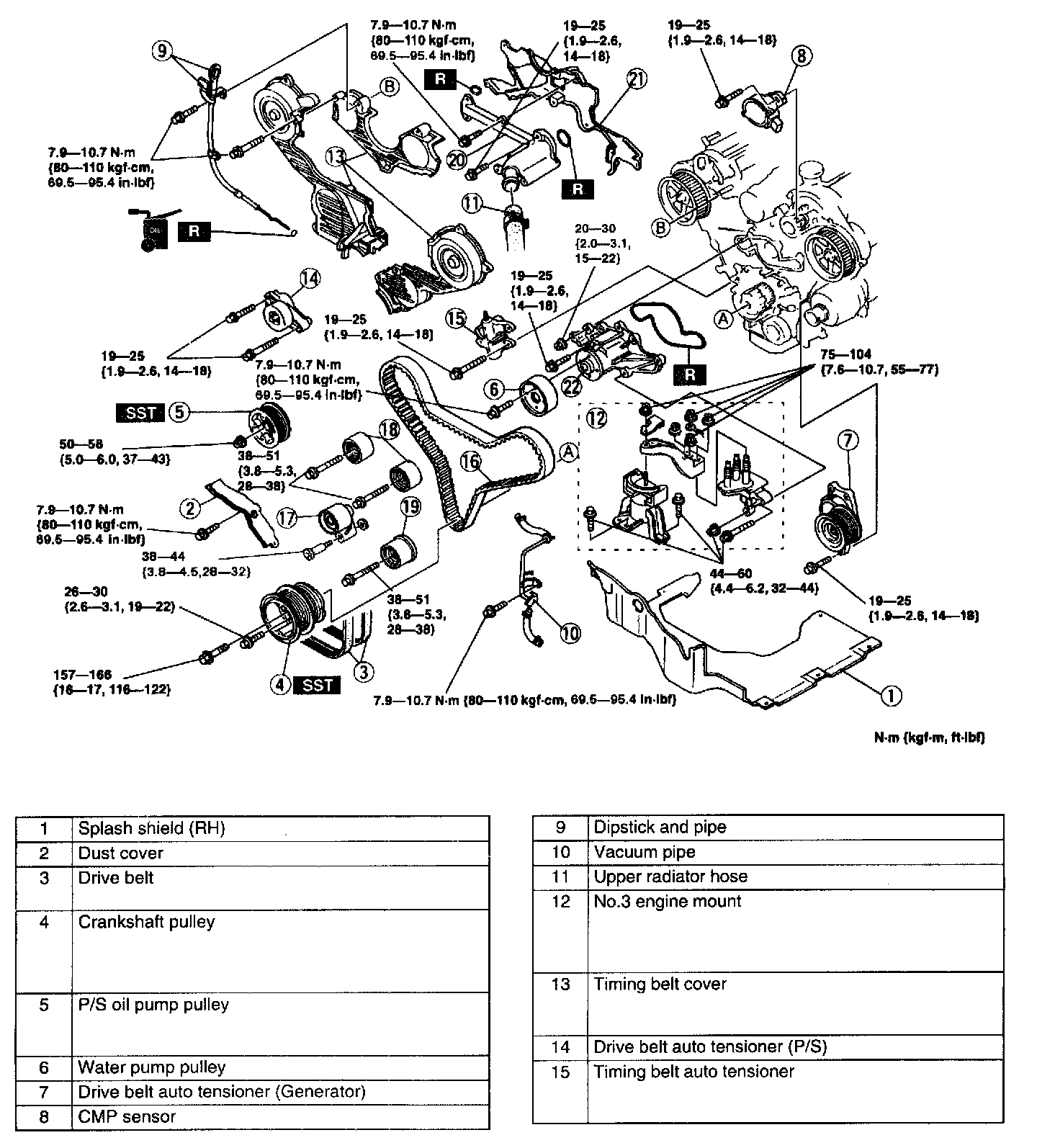 (All, exc. "A")Tighten to 19 - 25 Nm (1.9 - 2.6 kgf-m, 14 - 18 ft. lbs.)