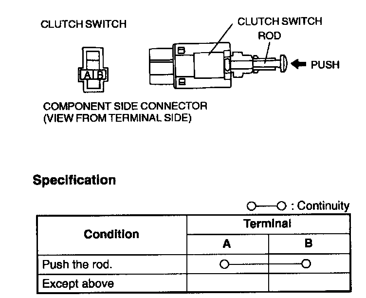 4. Inspect the continuity between the clutch switch terminals A and B using an ohmmeter.