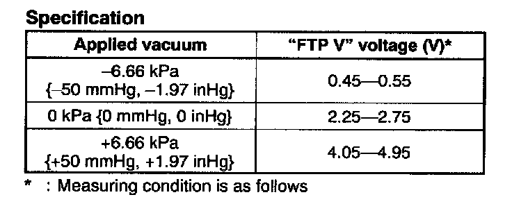 - If not as specified, replace the fuel tank pressure sensor.
