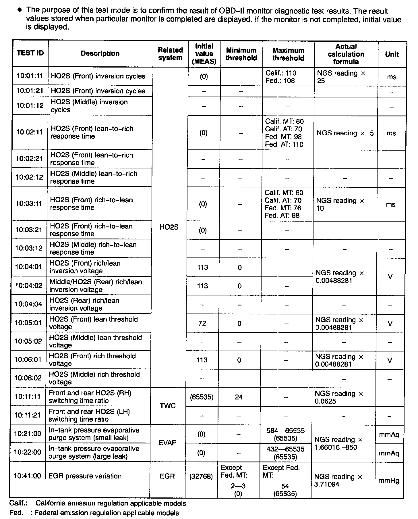 Diagnostic Monitoring Test Results