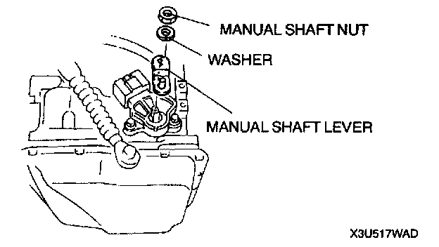 Caution: Do not use an impact wrench. Hold the manual shaft lever when removing the manual shaft nut, or the transaxle may be damaged.