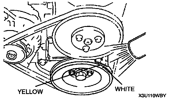4. Verify that the timing mark (yellow) on the crankshaft pulley is within the specification.