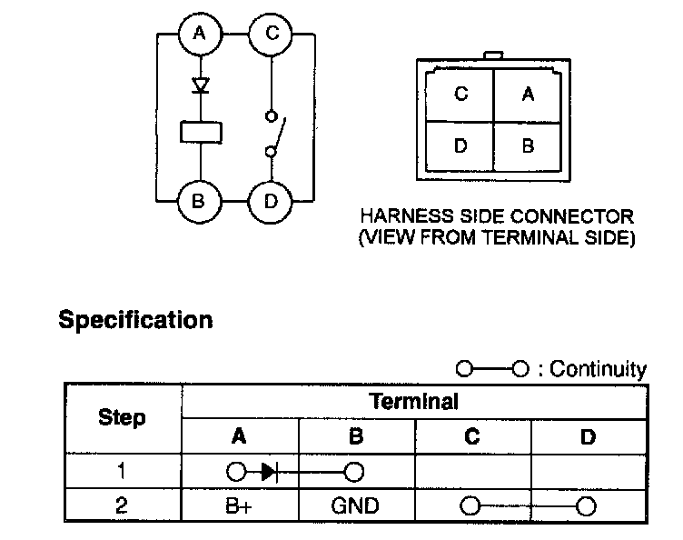 3. Inspect for continuity between terminals of the relay using an ohmmeter.