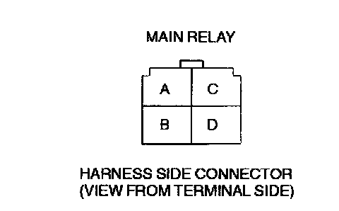 - Main relay power supply circuit (Main relay connector terminal A and ignition switch (IG1) connector through common connector to GND)