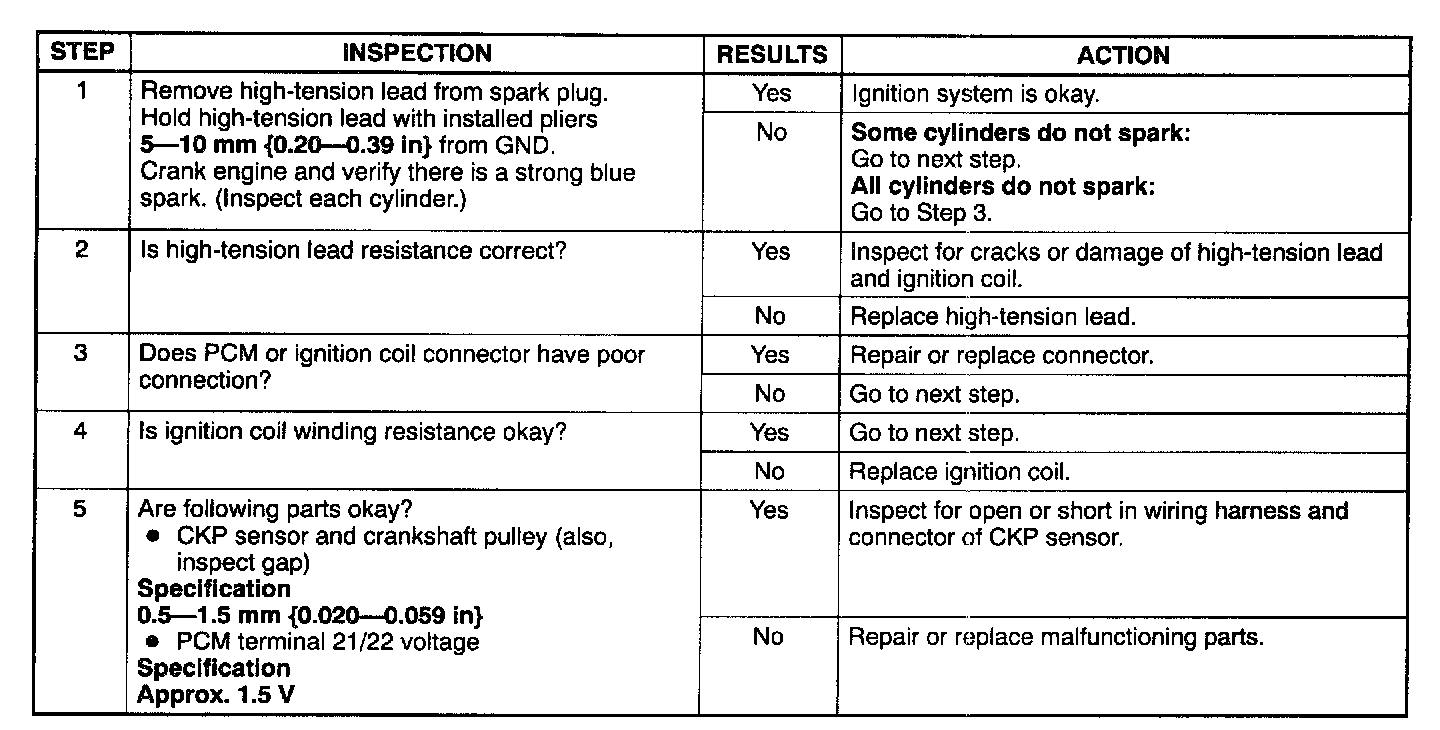 3. Inspect the ignition system in the procedure as given in the table.