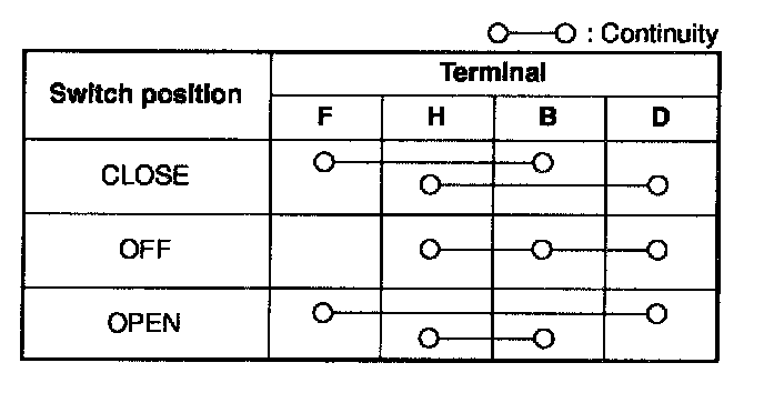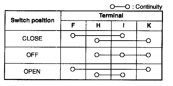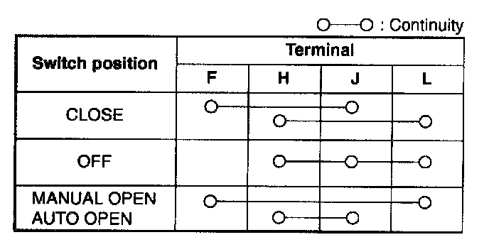 3. Inspect for continuity between the power window main switch terminals using an ohmmeter.