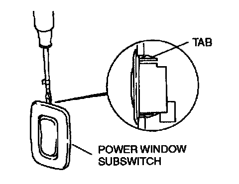 2. Remove the tab by inserting a tape-wrapped, flathead screwdriver between the switch and the rear door trim.
