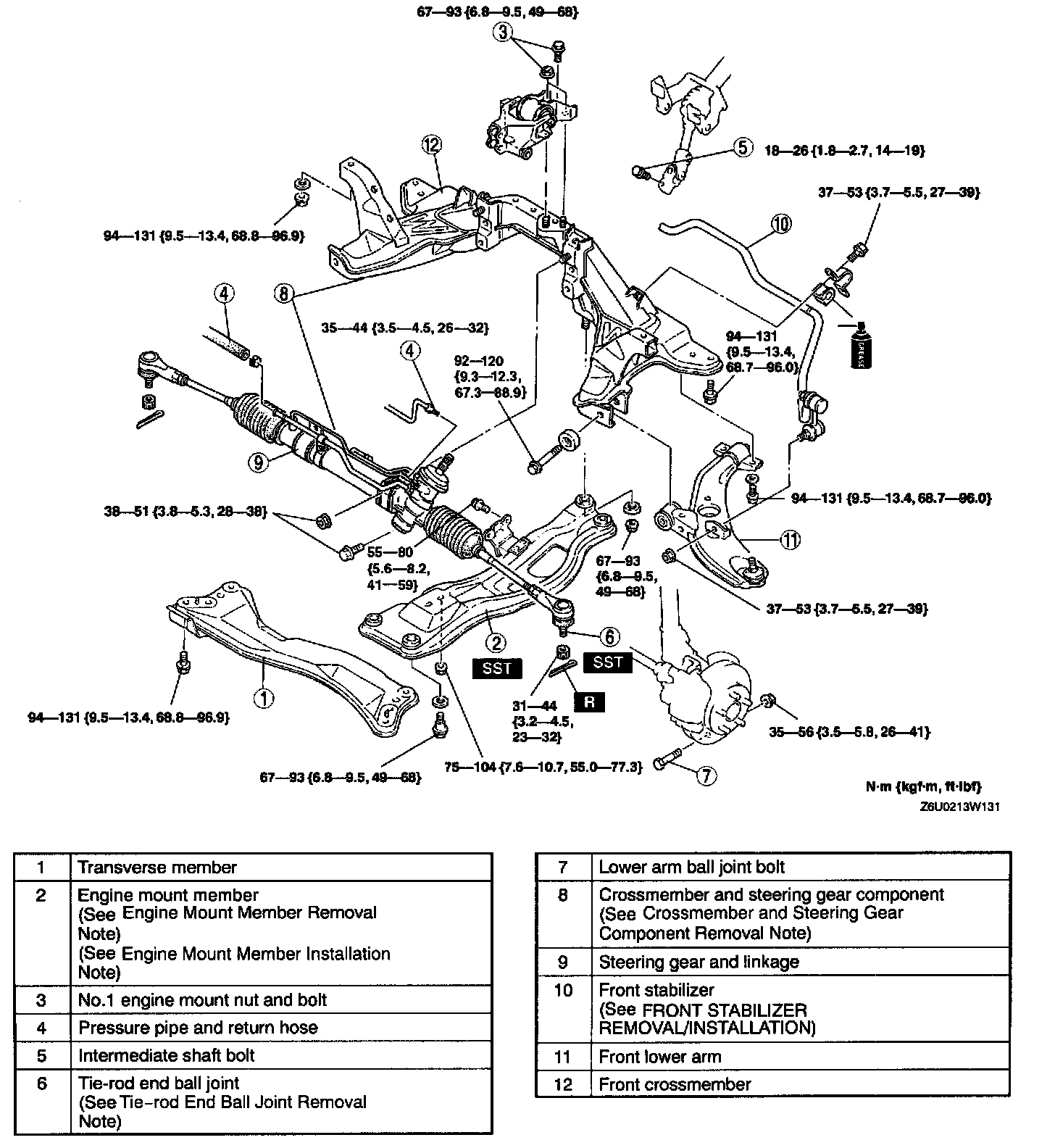 TRANSVERSE MEMBER AND FRONT CROSSMEMBER REMOVAL/INSTALLATION1. Remove the front exhaust pipe.