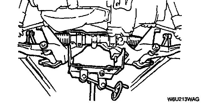 1. Support the crossmember using a jack and remove the bolts and nuts.