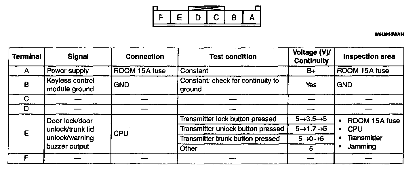 Terminals A - F: