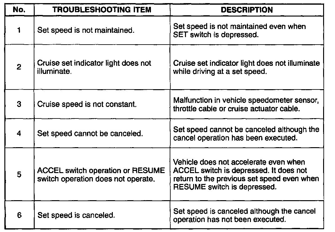 Cruise Control Symptom Diagnosis Index