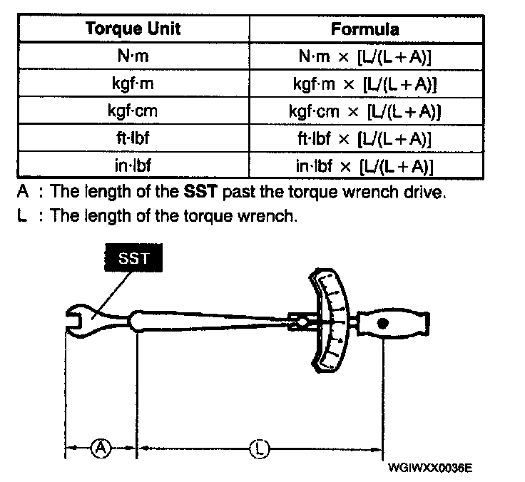 - When using a torque wrench-SST or equivalent combination, the written torque must be recalculated due to the extra length that the SST or equivalent adds to the torque wrench. Recalculate the torque using the following formulas. Choose the formula that applies to you.