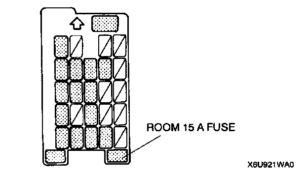 NOTE: When the ROOM fuse is burnt or removed, the malfunction indicator lamp illuminates. If the ROOM fuse is replaced or installed with the ignition switch at ON, the malfunction indicator lamp will continue to illuminate.