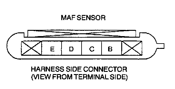 6. If the terminal voltage is correct and there is harness continuity, replace the mass air flow sensor.