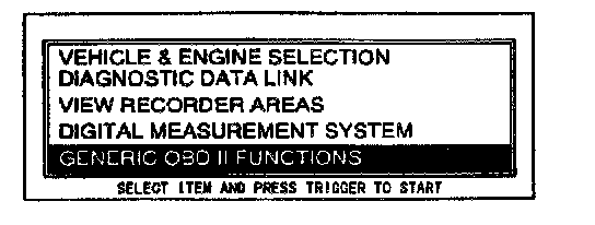 1. Perform the NGS tester hook-up procedure.2. Move the cursor to GENERIC OBD II FUNCTIONS.