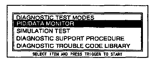 4. Move the cursor to PID/DATA MONITOR AND RECORD.