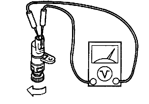 2. Measure the voltage between terminals of the vehicle speedometer sensor while rotating the drive gear by hand.